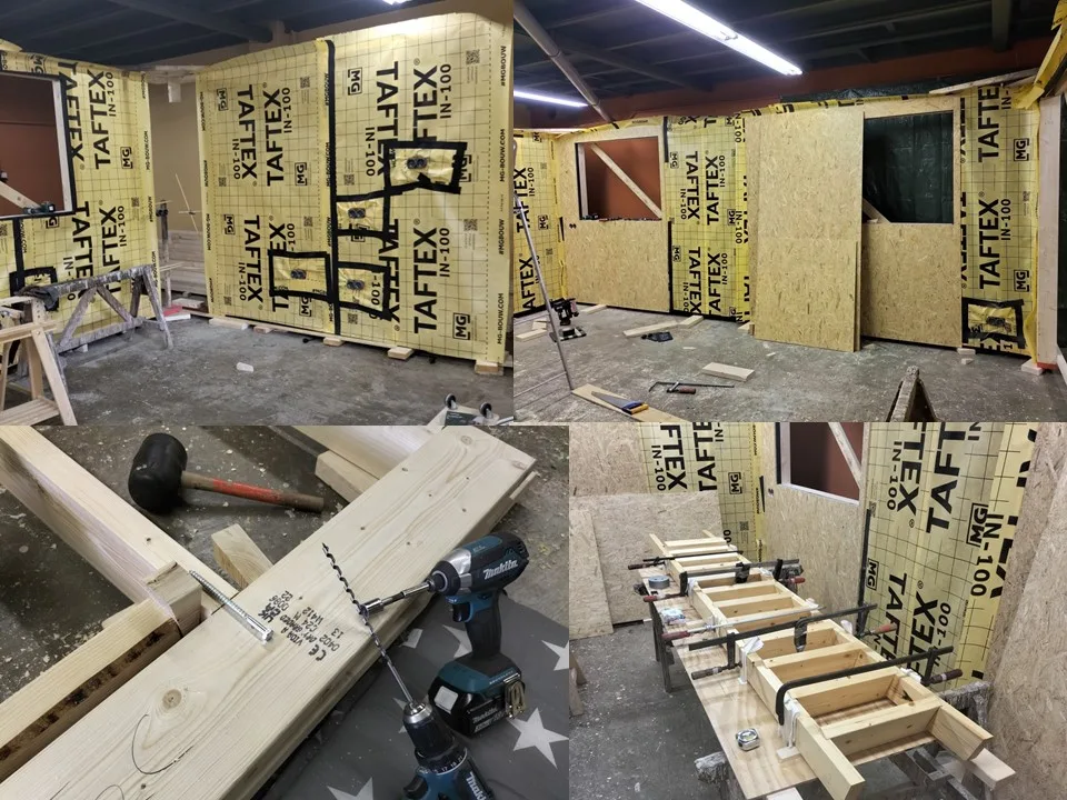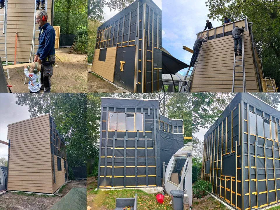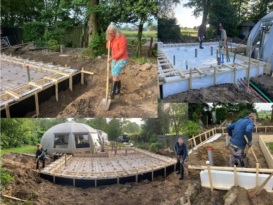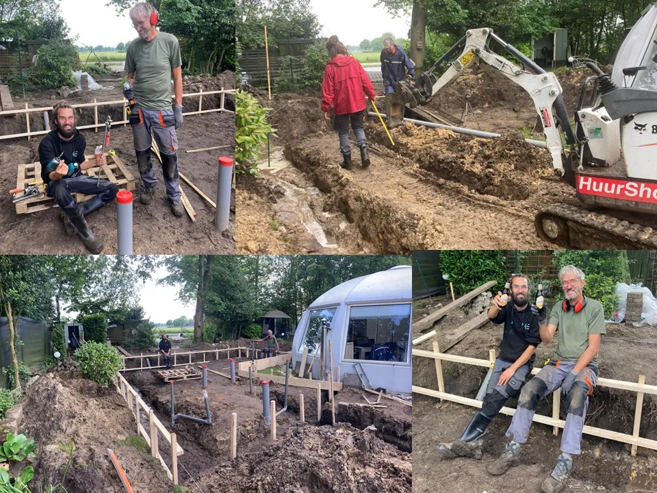 Vanaf half mei tot eind september 2024 hebben Gert Jan en Rindert, onze jongste zoon, gebouwd aan het achterhuis. Ze groeven samen de fundering, stortten het beton, prefabten de bouwdelen en monteerden het dak en de wanden.