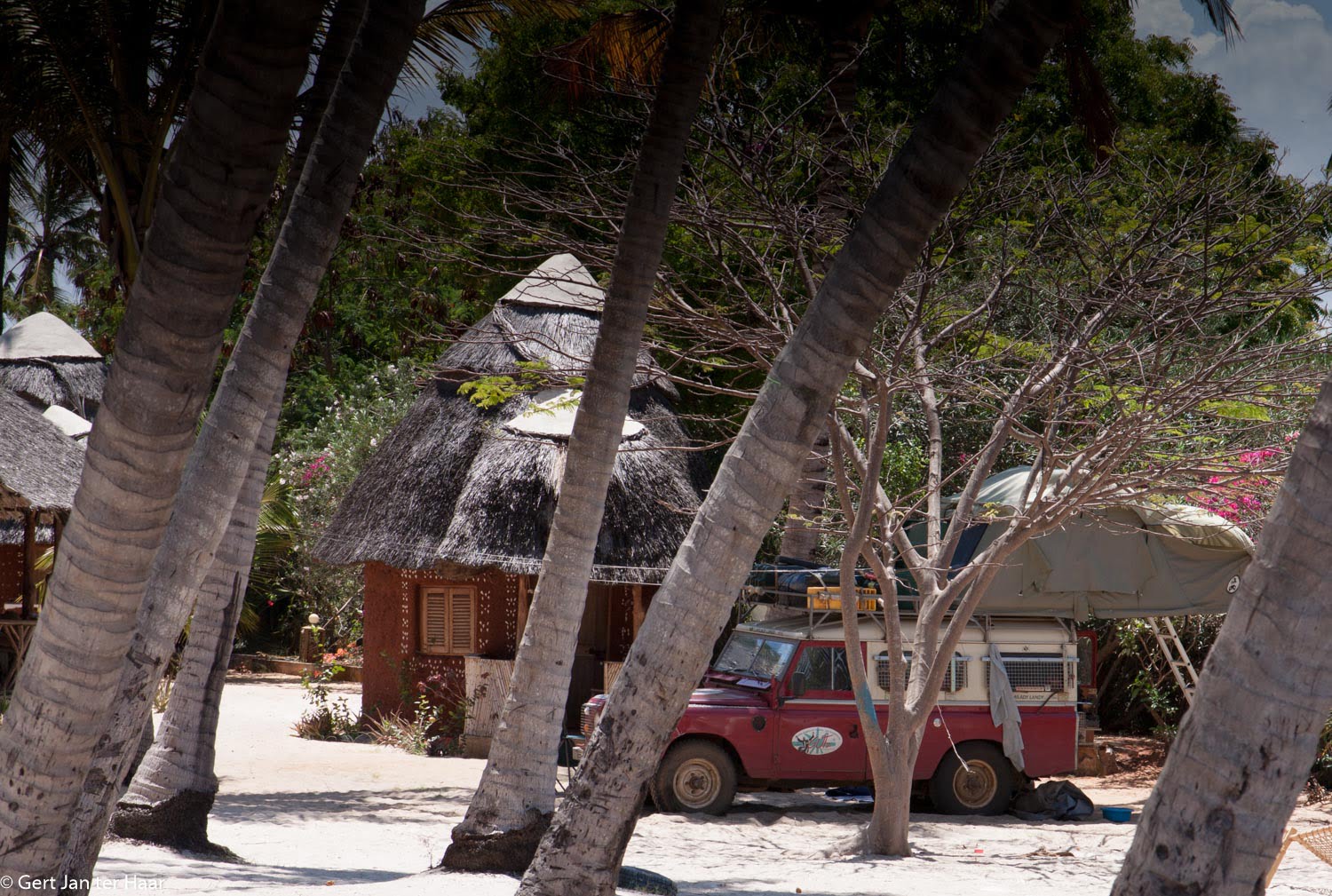 Diani Beach is vooral een toeristenplaats met veel hotels, lodges, guest houses en enkele campsites. We verblijven daar bij Diani Beach Backpackers, onze tent kunnen we op de parkeerplaats opzetten. Er is een heerlijk zwembad en een beperkte maar smakelijke keuken en we kunnen lopen naar het witte, tropische strand.