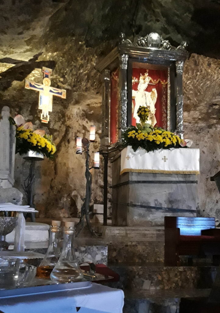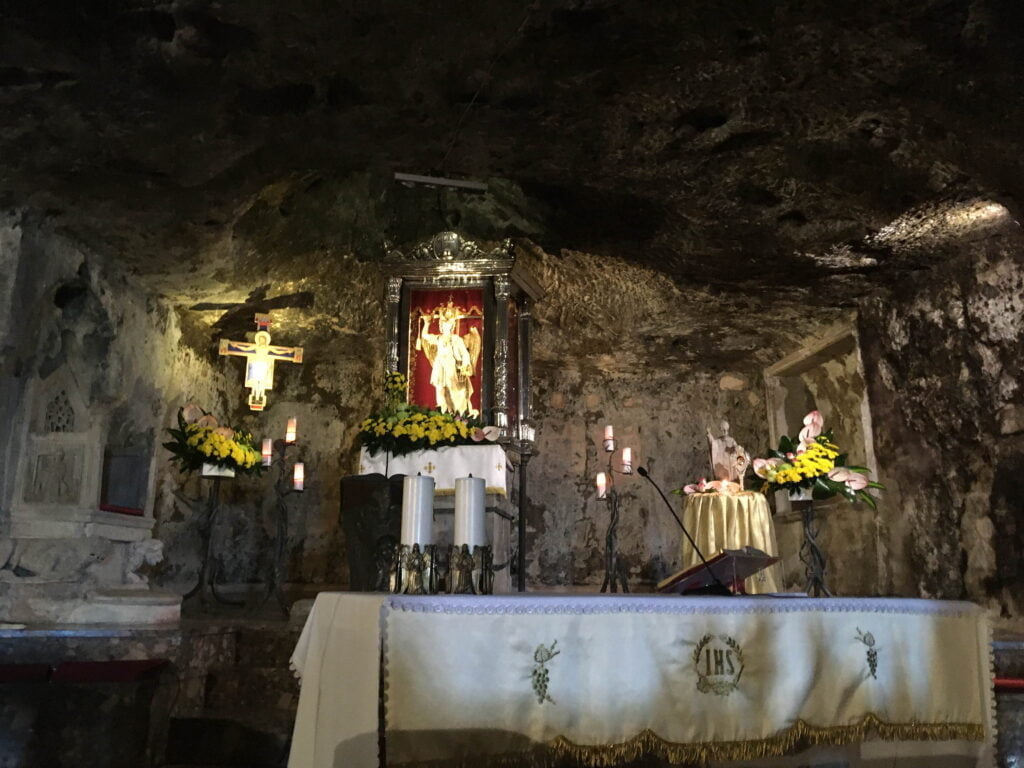 We rijden verder door de bergen van het Parco Nazionale del Gargano en bezoeken het Santuario di San Michele Arcangelo. Deze kerk is grotendeels in een grot in het stadje Monte Sant’Angelo gebouwd, erg bijzonder.