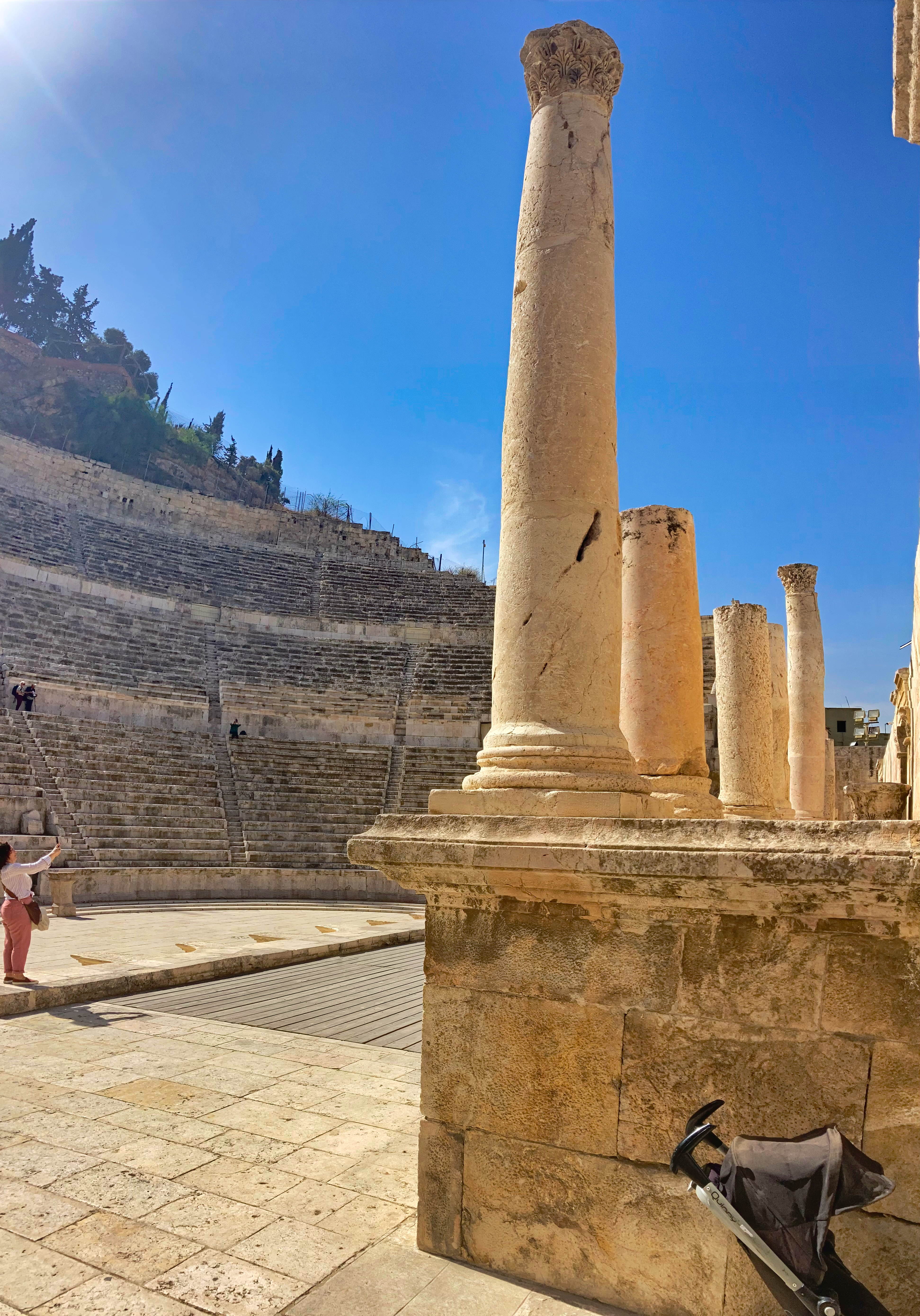De eerste keer dat we de hoofdstad Amman bezoeken gaan we de hoogtepunten af. Later komen we nog terug, maar dat wisten we nog niet toen we hier voor het eerst waren. We parkeren Milady Landy op de parkeerplaats bij de Citadel, een enorme historische vindplaats in het centrum van Amman.