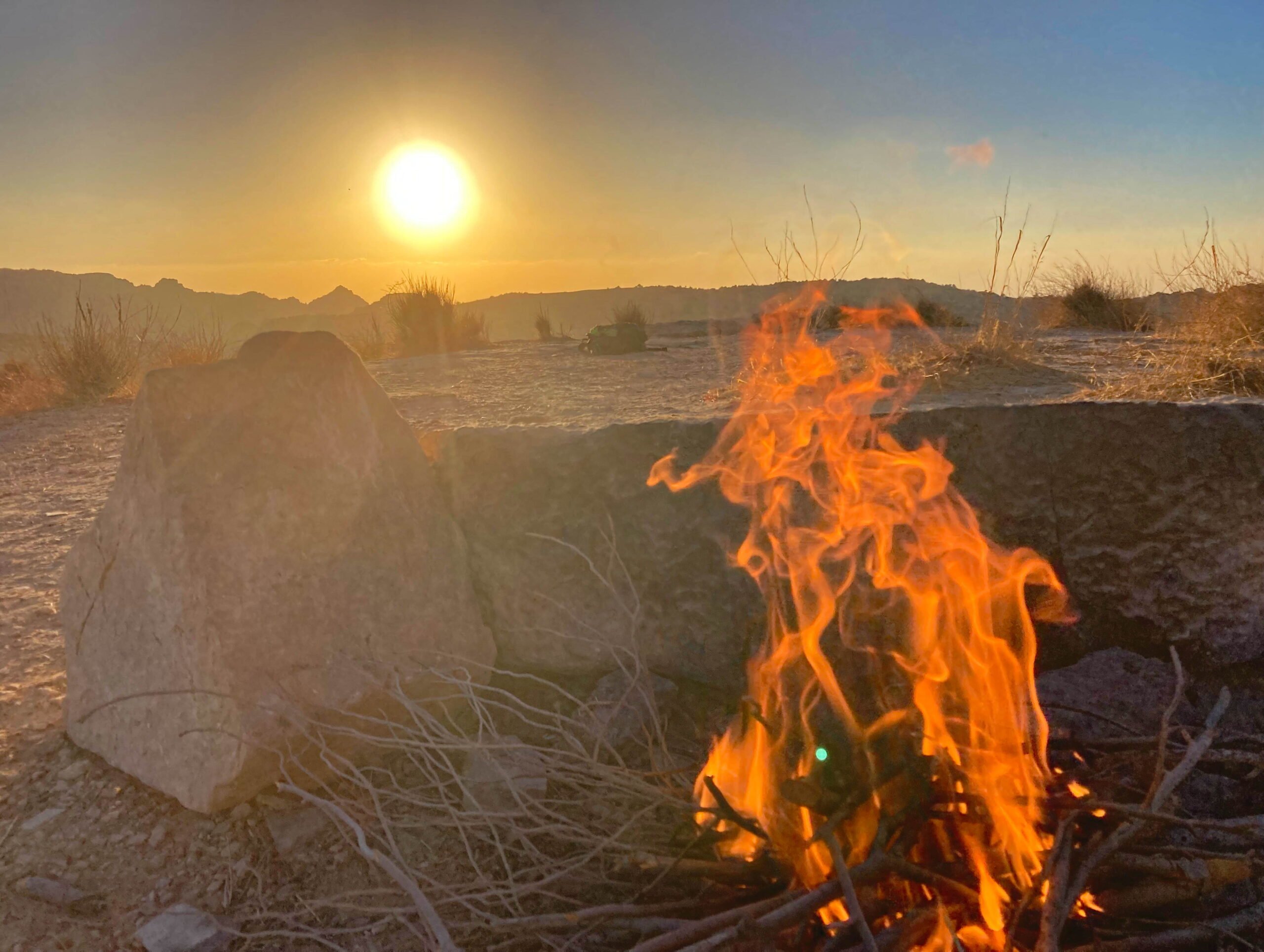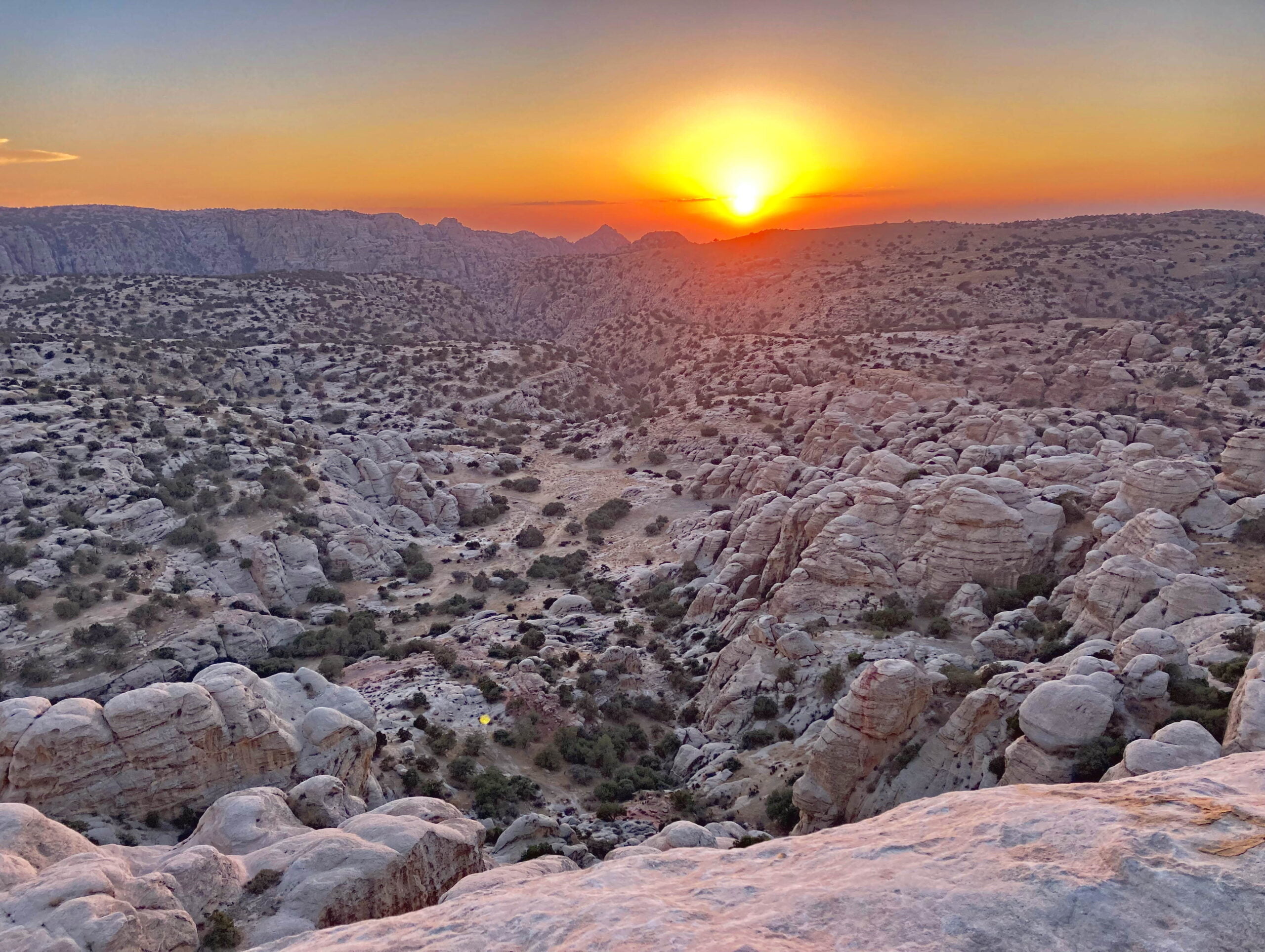 We zien de zon ondergaan over de Jordaanvallei en krijgen daarbij een vers gemaakt kopje thee.