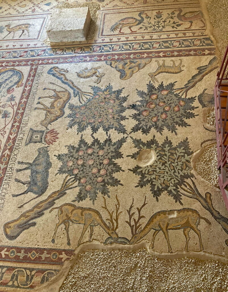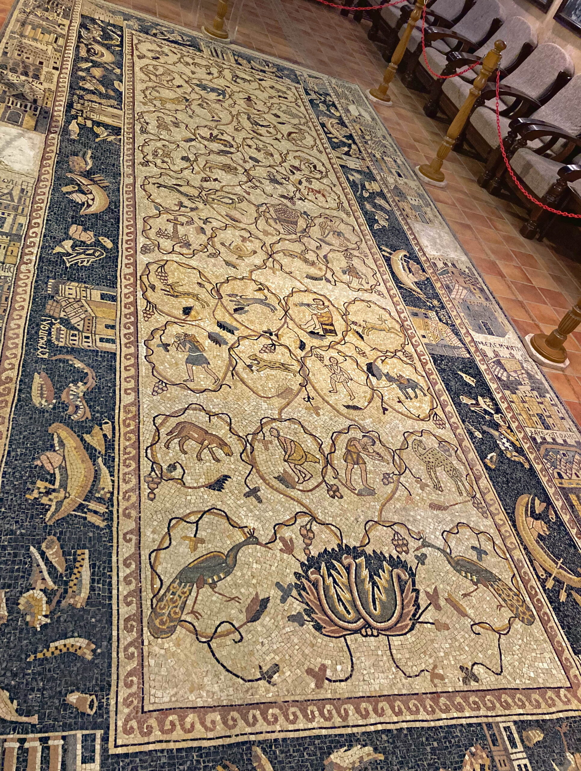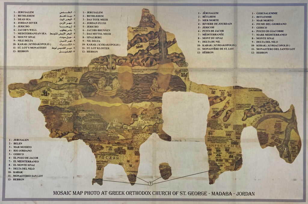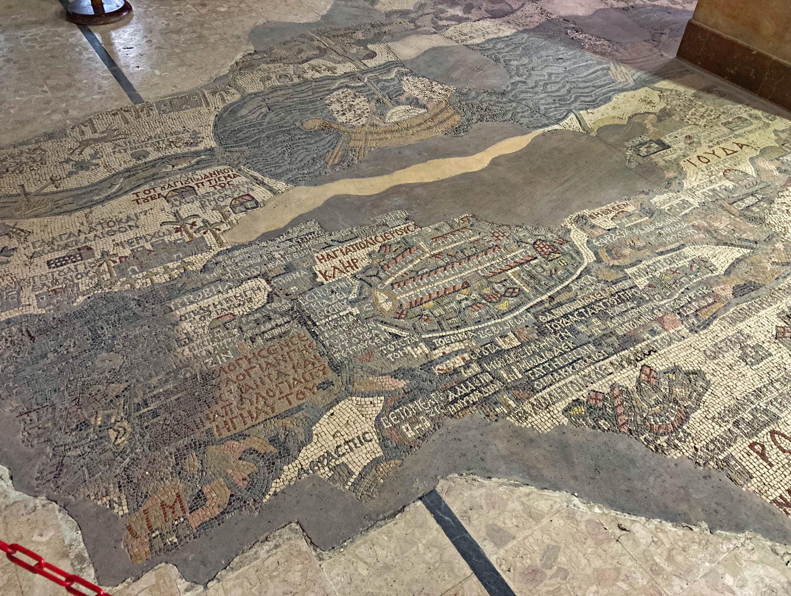 In de stad wandelen we langs bruinrode lijn op de stoepen. Zo worden we naar de verschillende bezienswaardigheden in de stad geleid vanaf het Madaba Visitor Centre. We zien zo het Madaba Archeological Park, Church of the Martyrs, St. Georges Greek Orthodox Church en St. John the Baptist Church. Met stijgende verbazing bewonderen we de vele mozaïeken die in deze stad bewaard gebleven zijn in de afgelopen millennia.