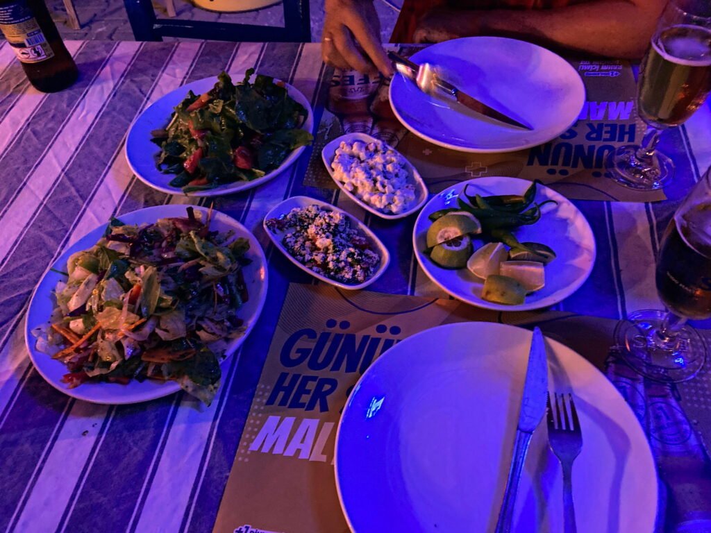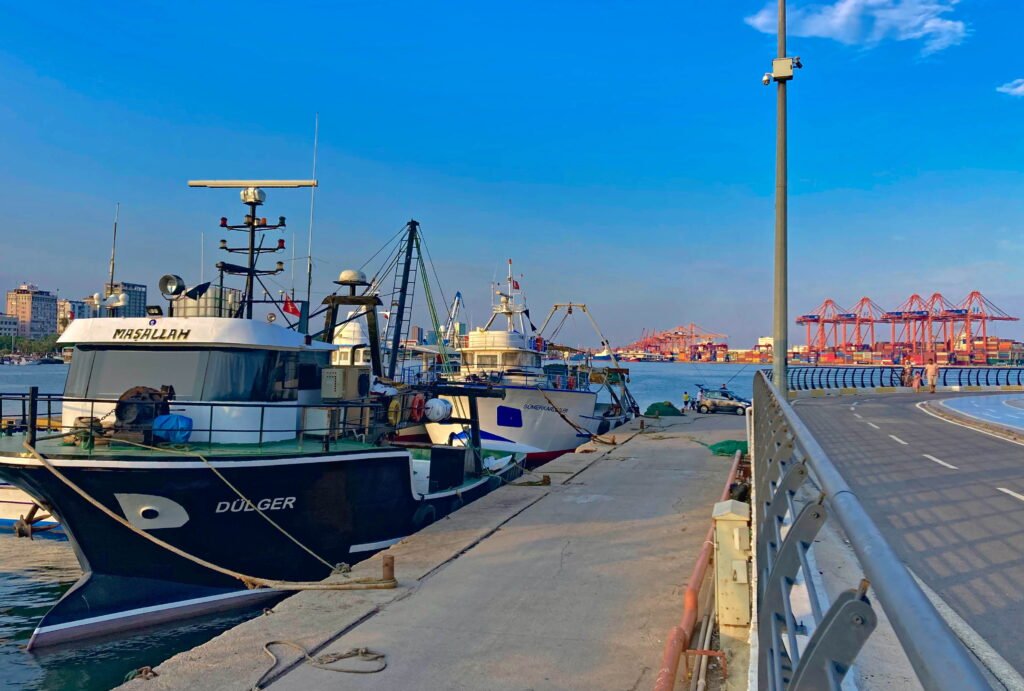 We vinden in Mersin een plekje vlakbij de marina en toeristenhaven en eten een visje in één van de vele drijvende restaurantjes.
