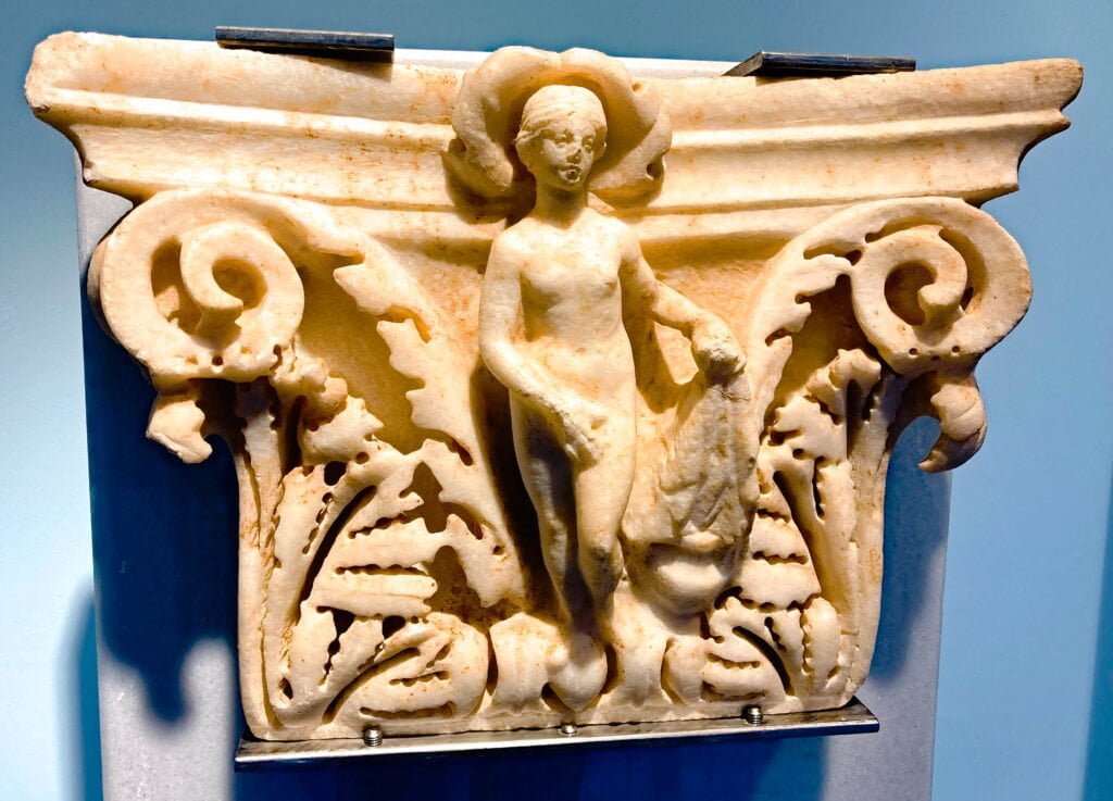 In het museum staat het beeld van Aphrodite, zonder hoofd, maar we kunnen ons voorstellen dat het hoofd ernaast op de torso kan hebben gestaan.