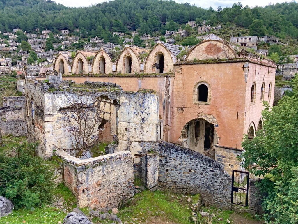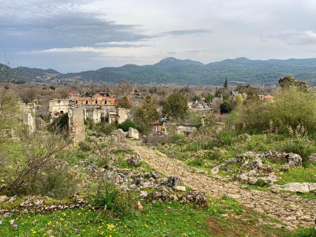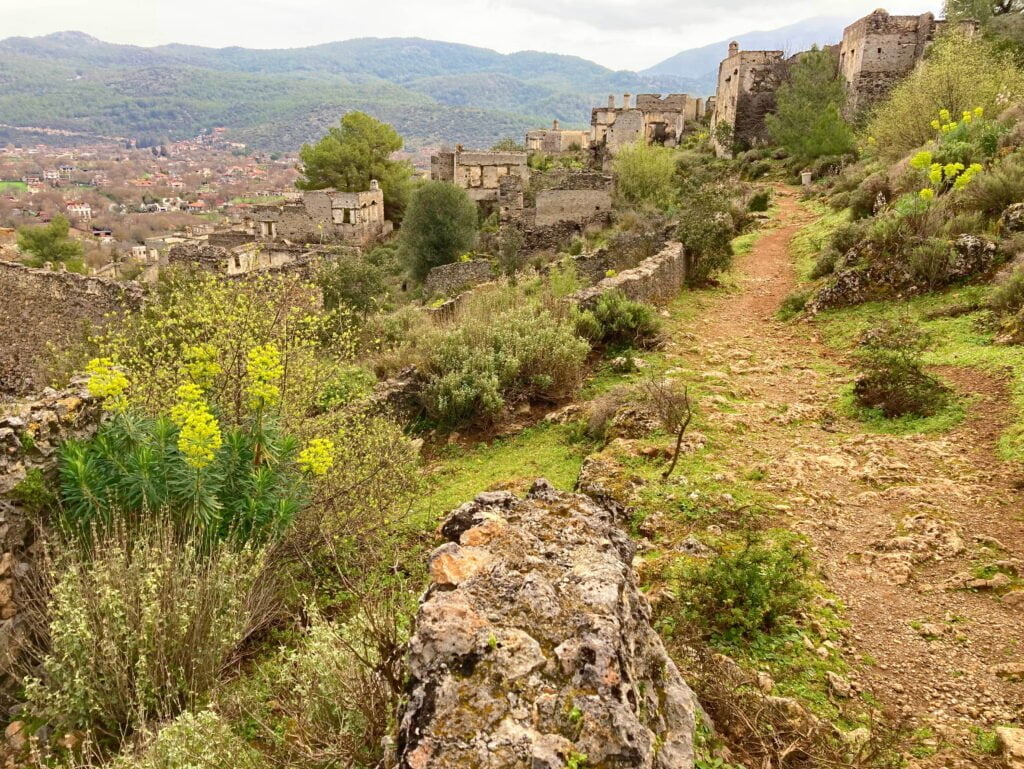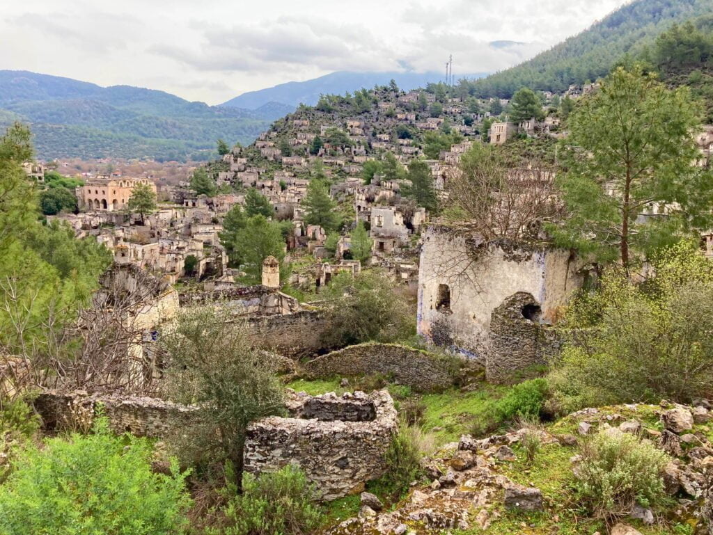 Nu de auto weer gemaakt is en de inspanningen geleverd, wordt het tijd voor een volgende ervaring. We rijden naar Kayaköy, een verlaten dorpje ten westen van Ölüdeniz. De historie van deze nederzetting gaat terug tot 3000 voor Christus. Kayaköy is bewoond gebleven tot 1923 toen in het kader van de Grieks-Turkse uitwisseling de bewoners naar Griekenland zijn vertrokken.