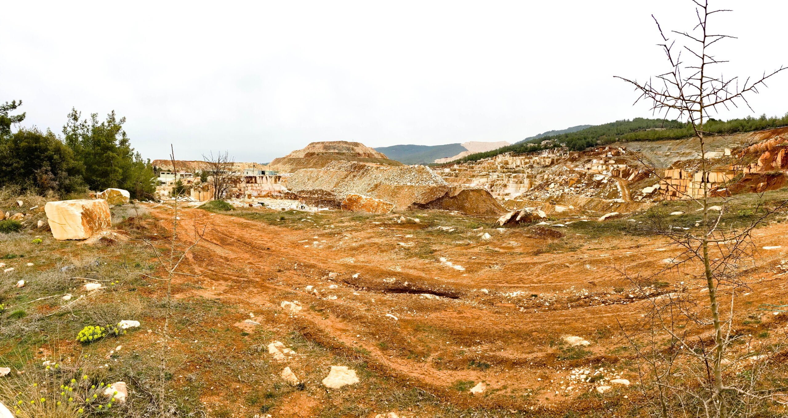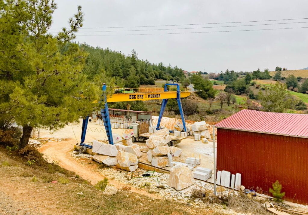 Vanuit Bodrum rijden we naar het oosten, het binnenland in. Door de talloze marmergroeves die we onderweg zien realiseren we ons dat ook nu nog natuursteen als belangrijk bouwmateriaal wordt gebruikt, net als in de oudheid. De ingrepen in het landschap zijn enorm met gigantische afvalbergen tot gevolg.