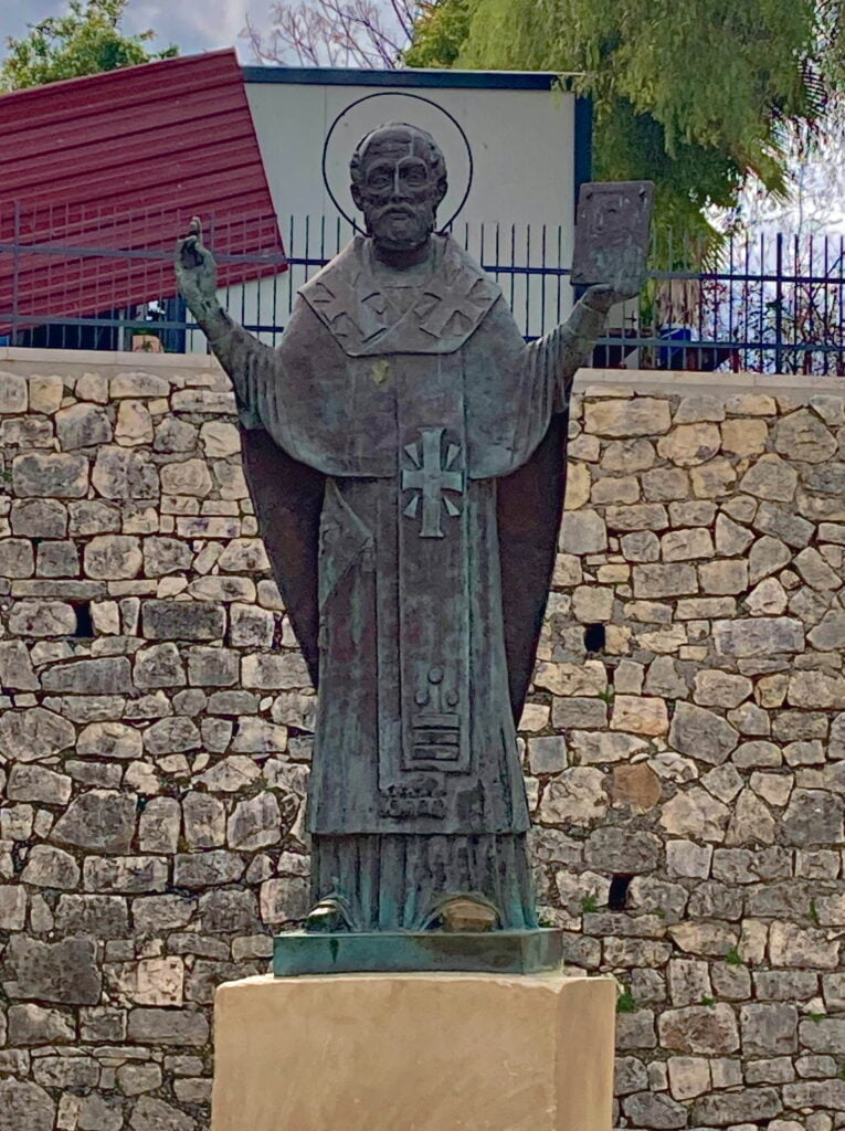 Bij toeval ontdekken we langs de weg die we richting Antalya rijden een bruin bordje richting Myra. Dat doet een belletje bij ons rinkelen en zo rijden we naar de plaats waar de bisschop van Myra heeft geleefd, bij ons beter bekend als Sint-Nicolaas.