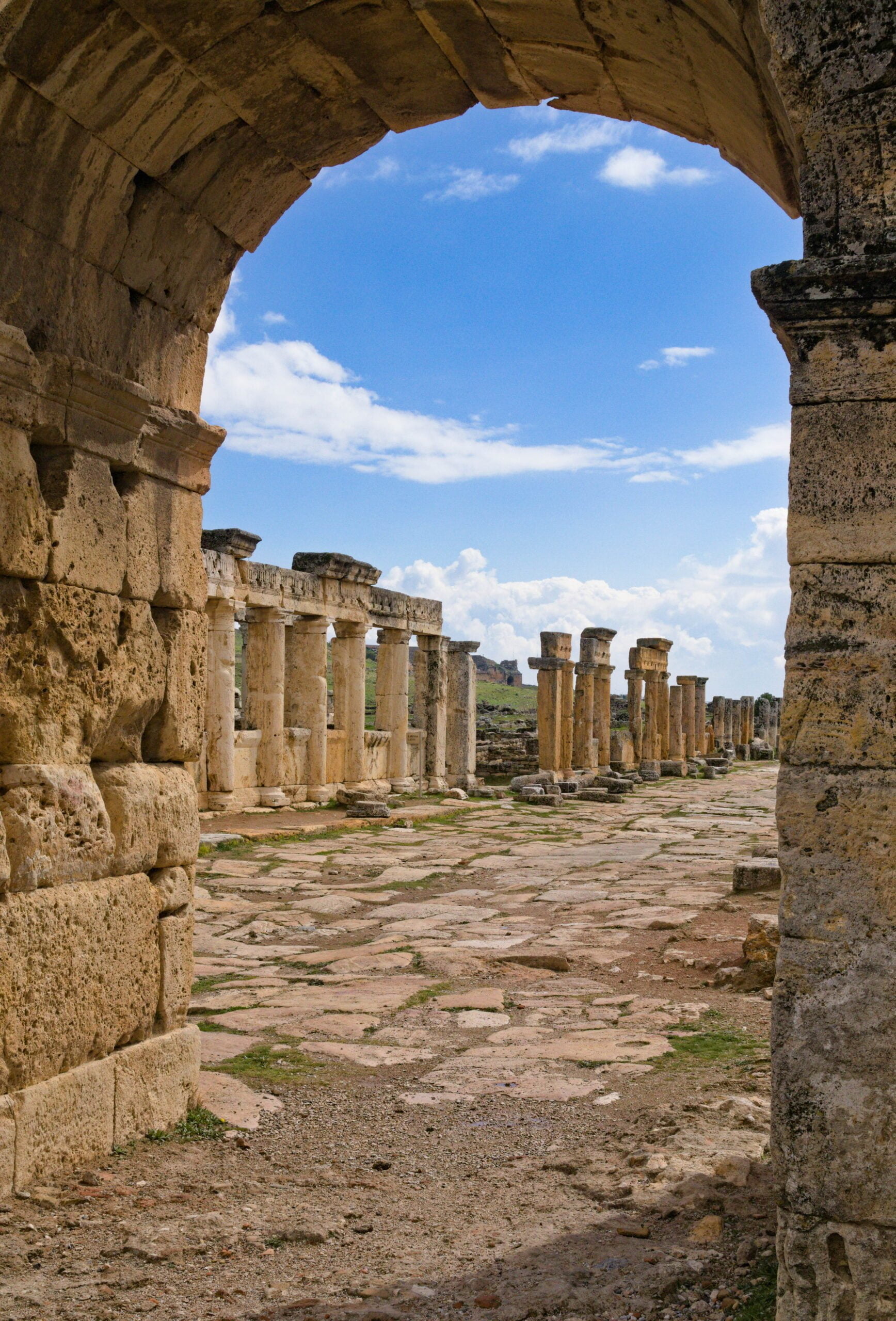 Als we bekomen zijn van de ballonnenervaring en ons ontbijt hebben gegeten, rijden we naar de zuidelijke ingang van de antieke stad Hiërapolis. Deze grote oude stad bovenaan het plateau van Pamukkale laat zien dat ook in de oudheid al volop gebruik gemaakt werd van de thermische baden. De stad is mooi bewaard gebleven en wordt nog voortdurend gerestaureerd.