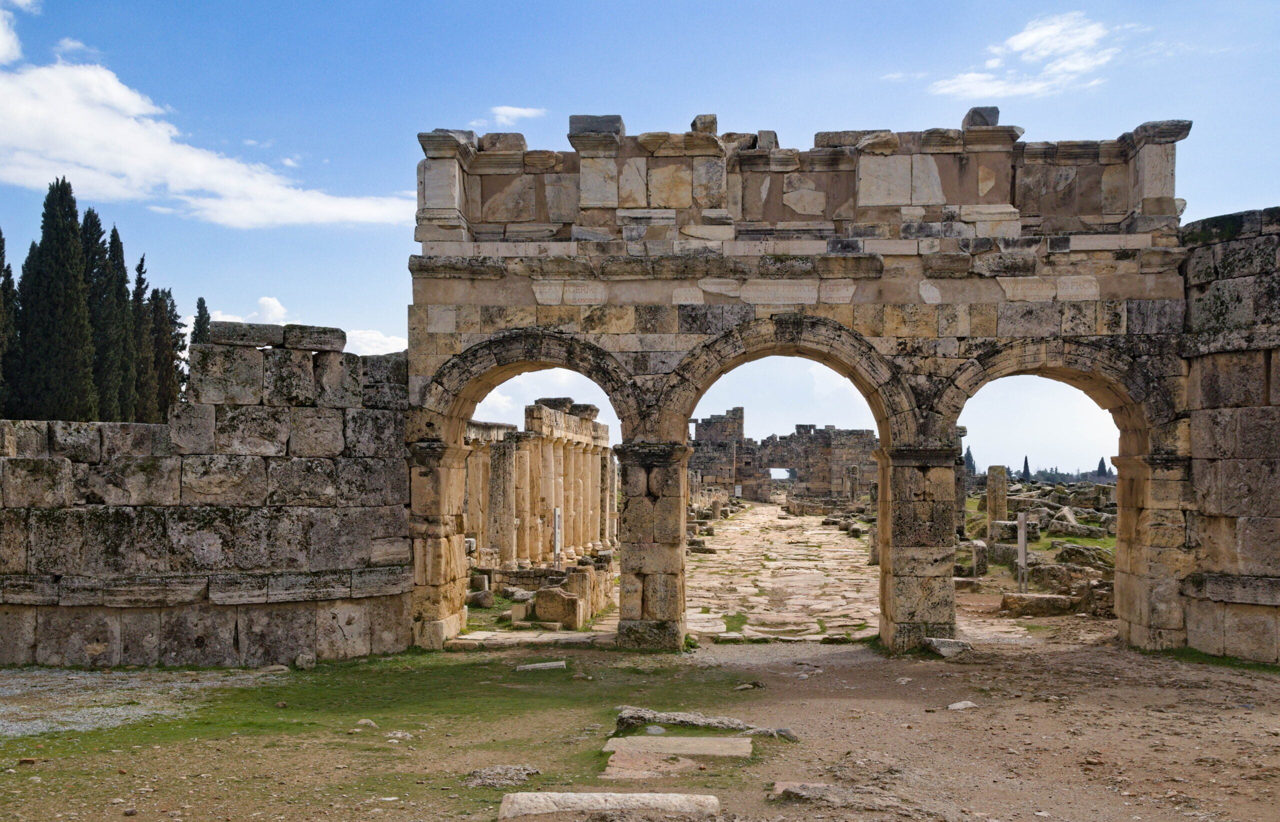 Als we bekomen zijn van de ballonnenervaring en ons ontbijt hebben gegeten, rijden we naar de zuidelijke ingang van de antieke stad Hiërapolis. Deze grote oude stad bovenaan het plateau van Pamukkale laat zien dat ook in de oudheid al volop gebruik gemaakt werd van de thermische baden. De stad is mooi bewaard gebleven en wordt nog voortdurend gerestaureerd.