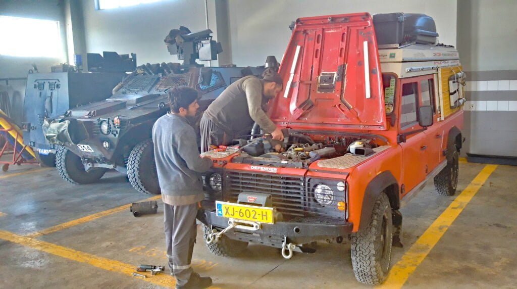 Al enige tijd remt Milady wat minder, vooral bij lage snelheden moet ik het rempedaal heel hard indrukken. Een vraag in de Facebook-groep Defender Adventure Turkey geeft me richting om in Erzurum een nieuwe pomp en een garage te vinden. Na een eerste rondje in de garagewijk van Erzurum krijg ik aanwijzingen naar Oto Güleryüz Otomotiv. Zij hebben de vacuümpomp en kunnen deze nog dezelfde ochtend monteren, voor een acceptabele prijs.