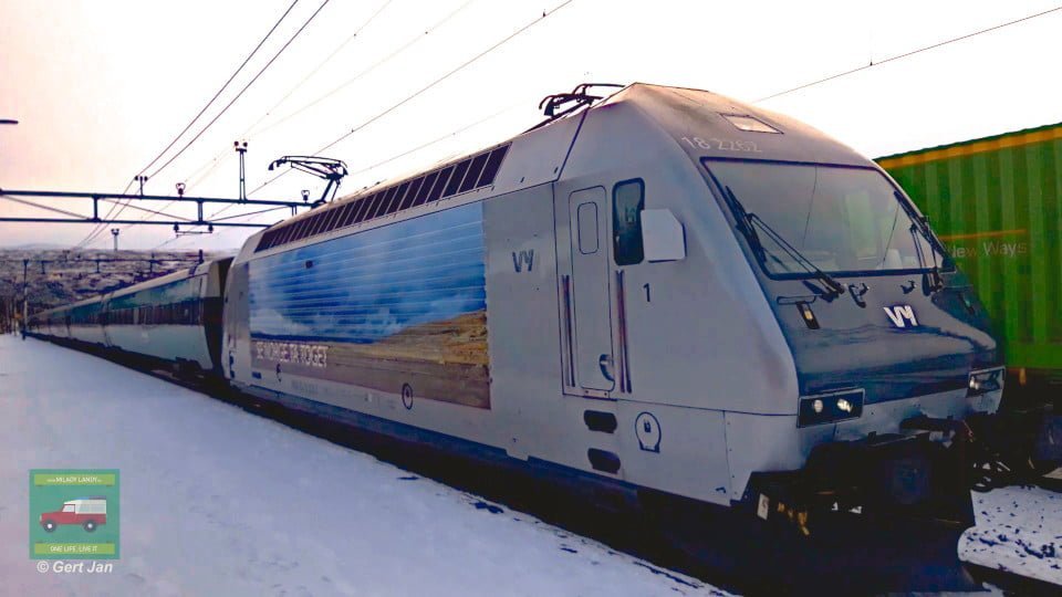 De trein is iets vertraagd, maar dat wordt netjes in het Noors en Engels aangekondigd in de wachtruimte.
