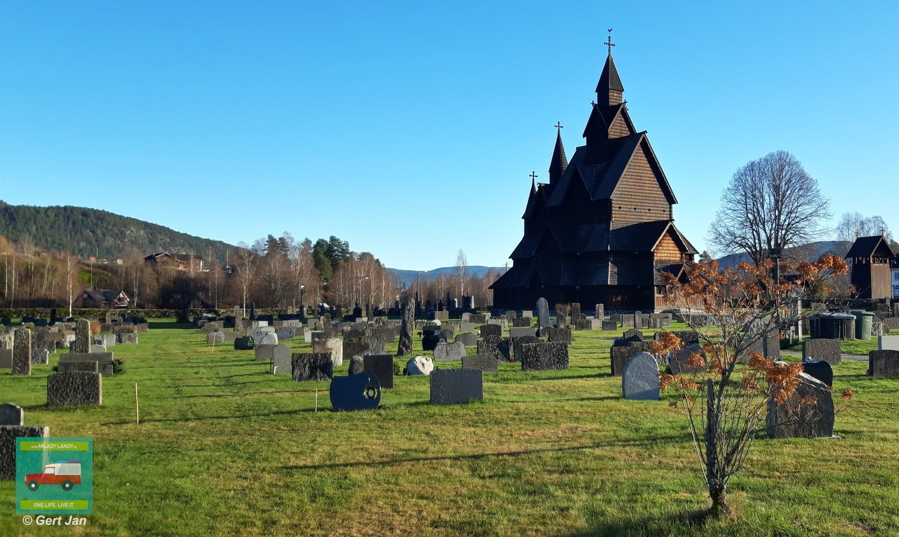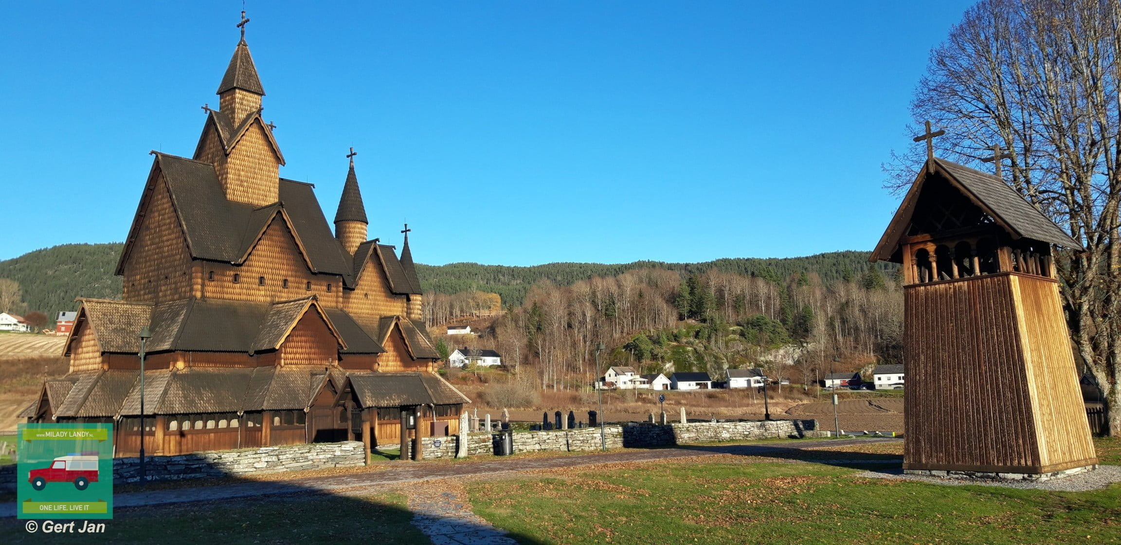 In het dorpje Heddal stoppen we even om de staafkerk te bekijken, de grootste van Noorwegen.