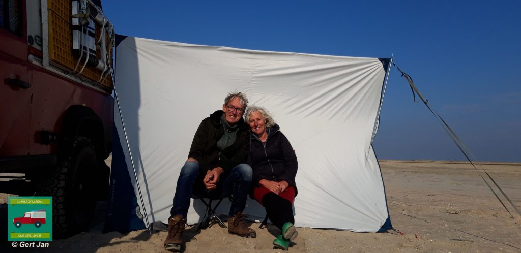 We ontmoeten op het strand Anja en Ehrhart uit Flensburg, zij zijn helemaal enthousiast over onze avonturen en nodigen ons uit voor een gezellig etentje bij hen in de caravan. Wij genieten van het vertellen van onze verhalen en zij zijn onverzadigbaar van onze ervaringen. We houden contact is de belofte.