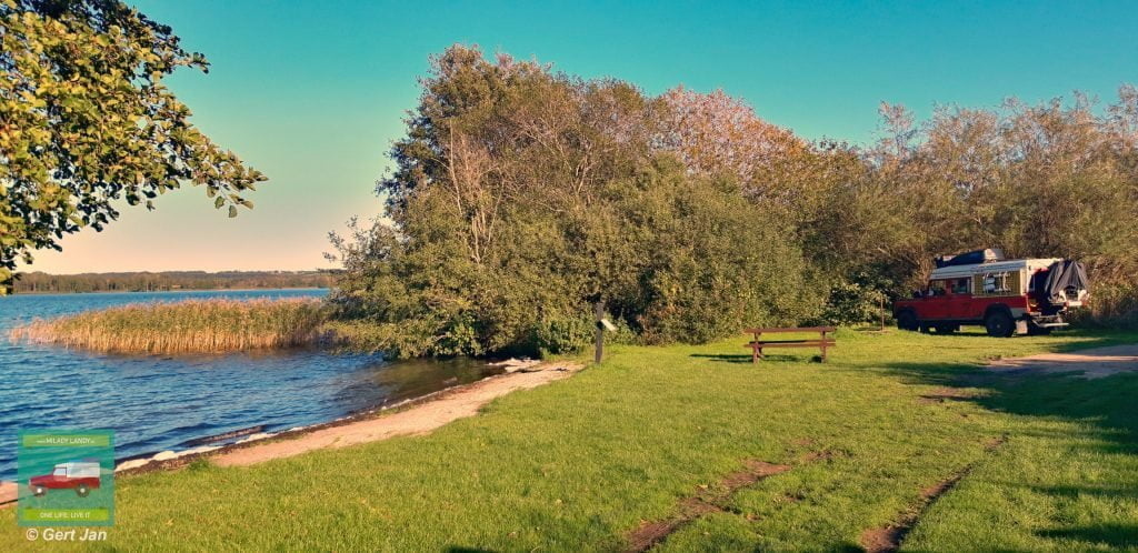 Een mooi wild kampeerplekje onderweg naar Aarhus was Hylke Strand, bij Skanderborg.