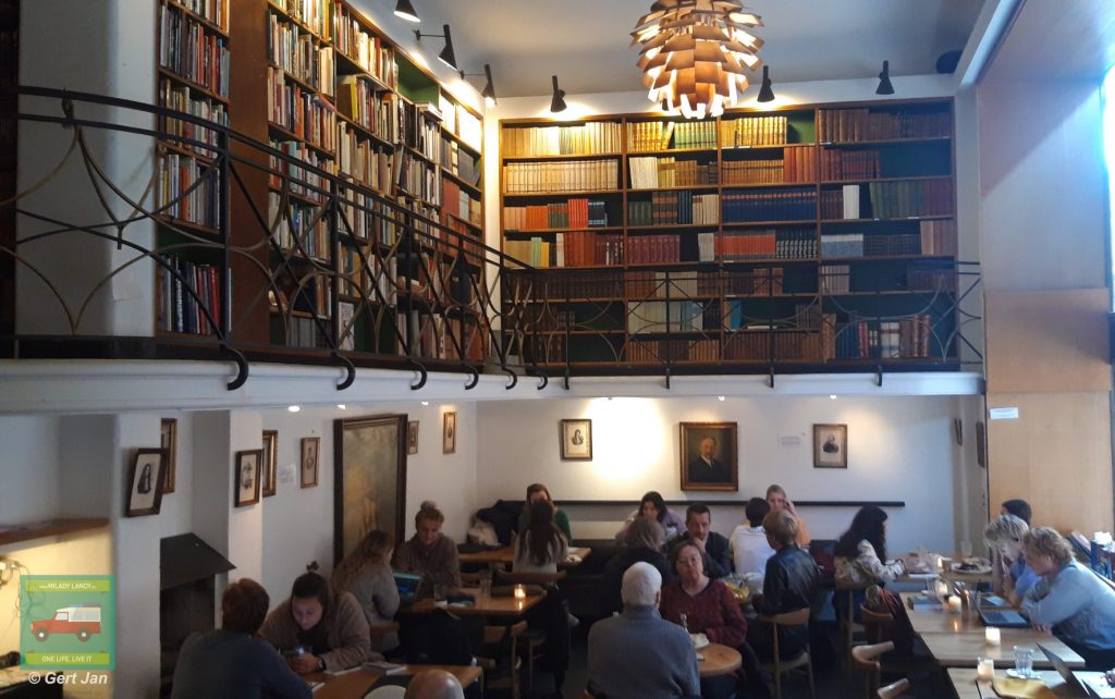 We lunchen bij het Paludan Bogcafé, het oudste boekcafé van Denemarken, echt heel lekker, een aanrader voor wie deze mooie stad aandoet.