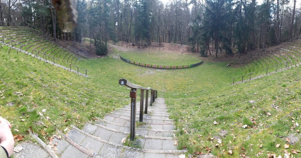 In het nabijgelegen openluchttheater gaan we even zitten, ik heb een video afspraak met oud vakgenoten van de BIG.