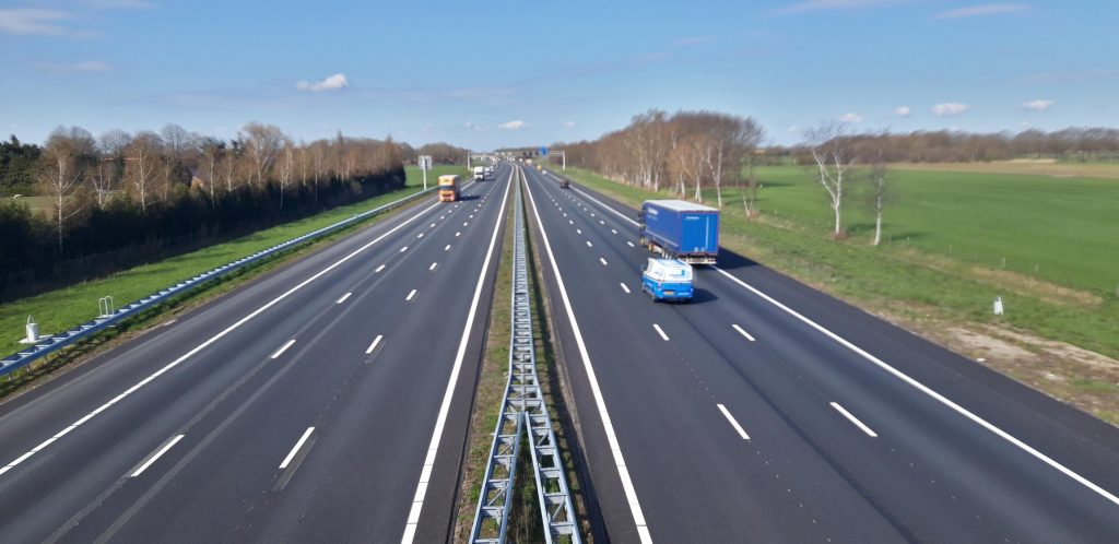Na enkele kilometers kruisen we de A1, in de jaren 1970 liep deze weg nog dwars door Holten.