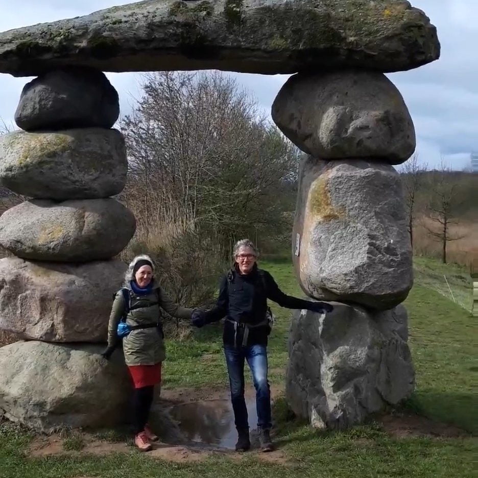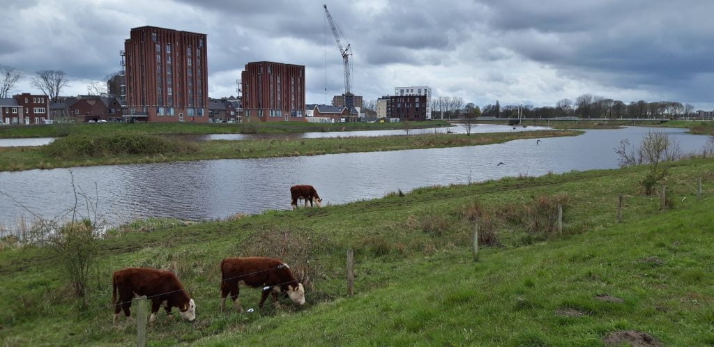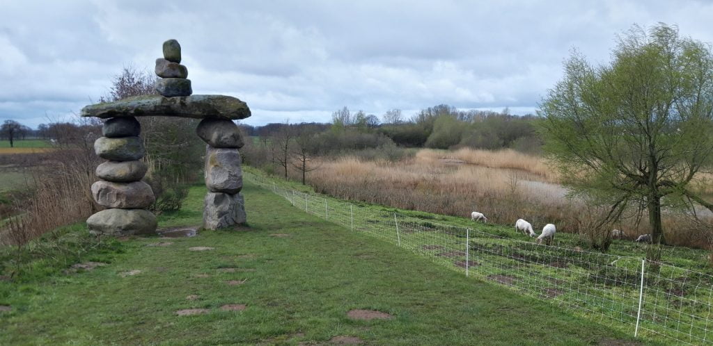 We lopen langs de rand van Coevorden door een mooi natuurgebiedje met watervogels en grazende schapen.
