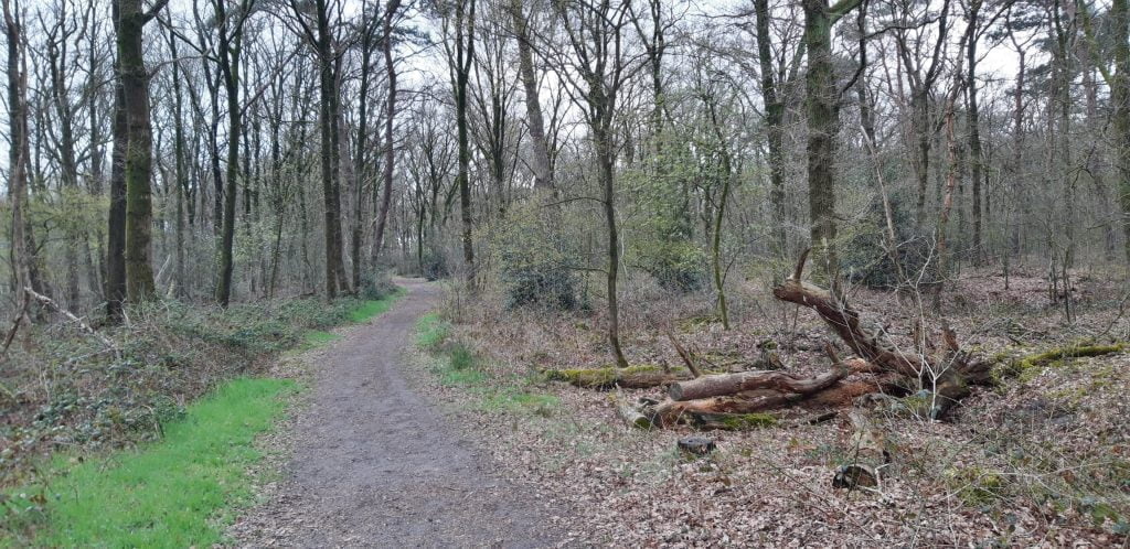 En mooi stukje bos breekt de tocht door de velden.