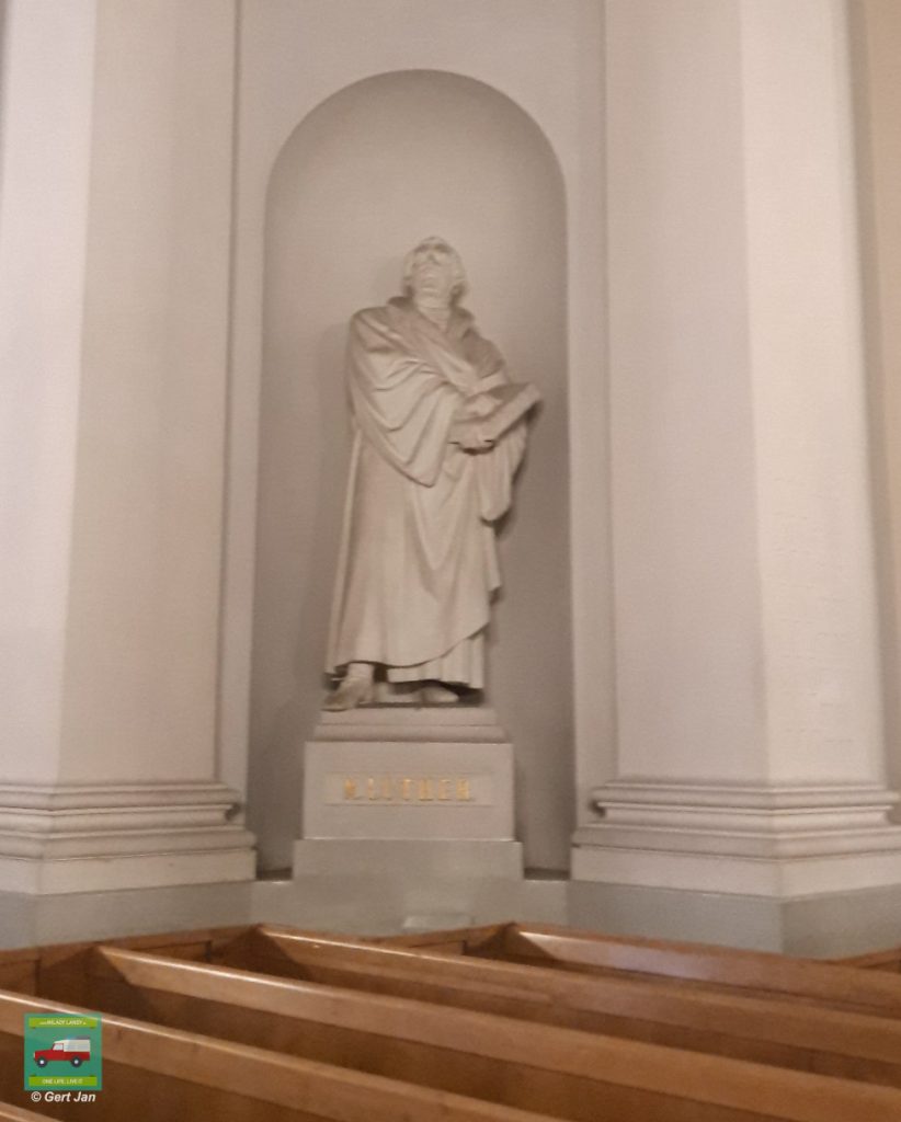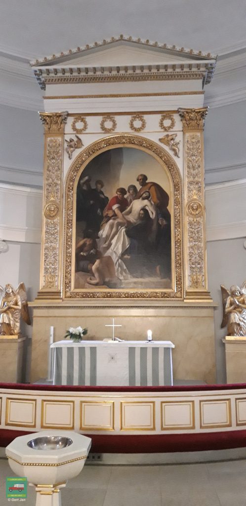 Vooral de fresco-schilderingen van Hugo Simberg maken indruk op ons. Het altaarstuk, de guirlande langs de galerij en vooral de gewonde engel zijn prachtig.