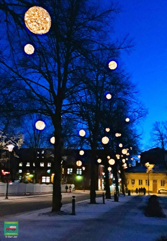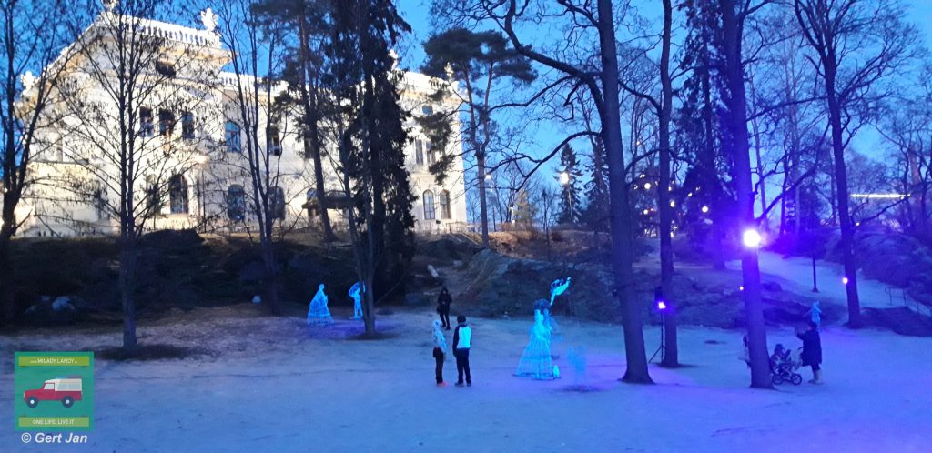 Als afsluiting van ons stadsbezoek gaan we naar het lichtfestival in het Näsinpuisto park. De kunstwerken zijn opgebouwd uit licht-reflecterend metaaldraad. Ze worden aangelicht door blacklight wat een bijzonder mooi effect geeft.