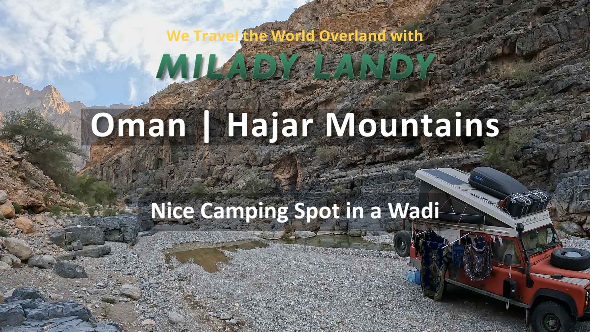 Dit is een plaats waar we kampeerden in het Hajar-gebergte. Laat in de middag vonden we deze wadi, checkten de weersvoorspelling op regen en openden onze tent. We brachten een rustige nacht door met het ruisen van water op de achtergrond en het kwaken van kikkers iets dichterbij. De volgende ochtend was de was droog en konden we onze reis vervolgen.
