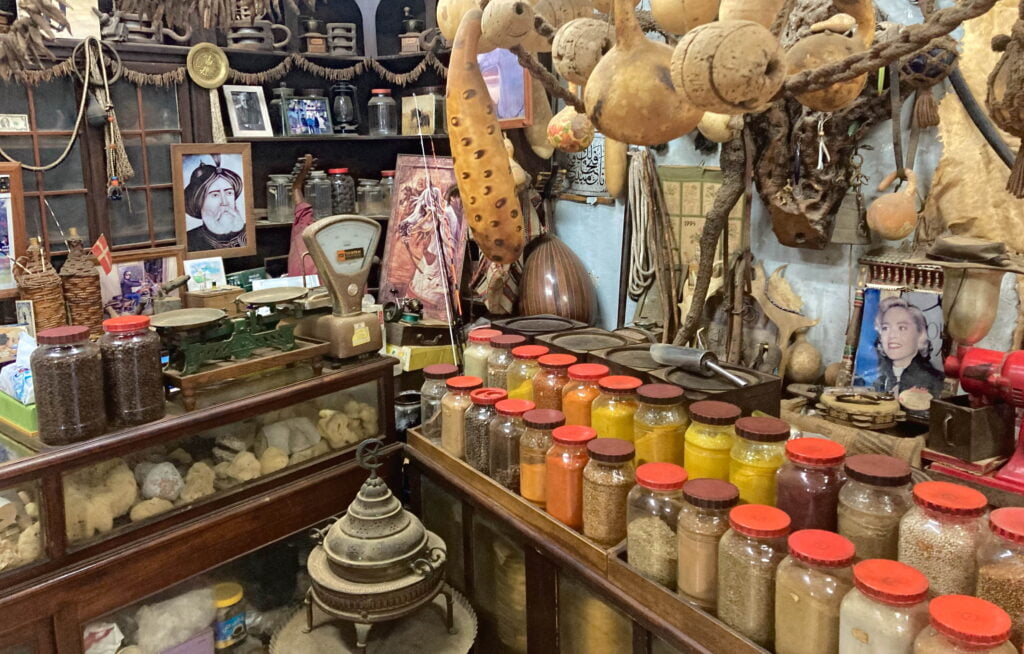 We also discover a shop here where herbs have been sold for 4 generations. Mr. Hamudi lets us smell and taste various herbs and also explains to us how they mix some herbs to give them a special aroma. Of course we can’t leave without buying some spices.