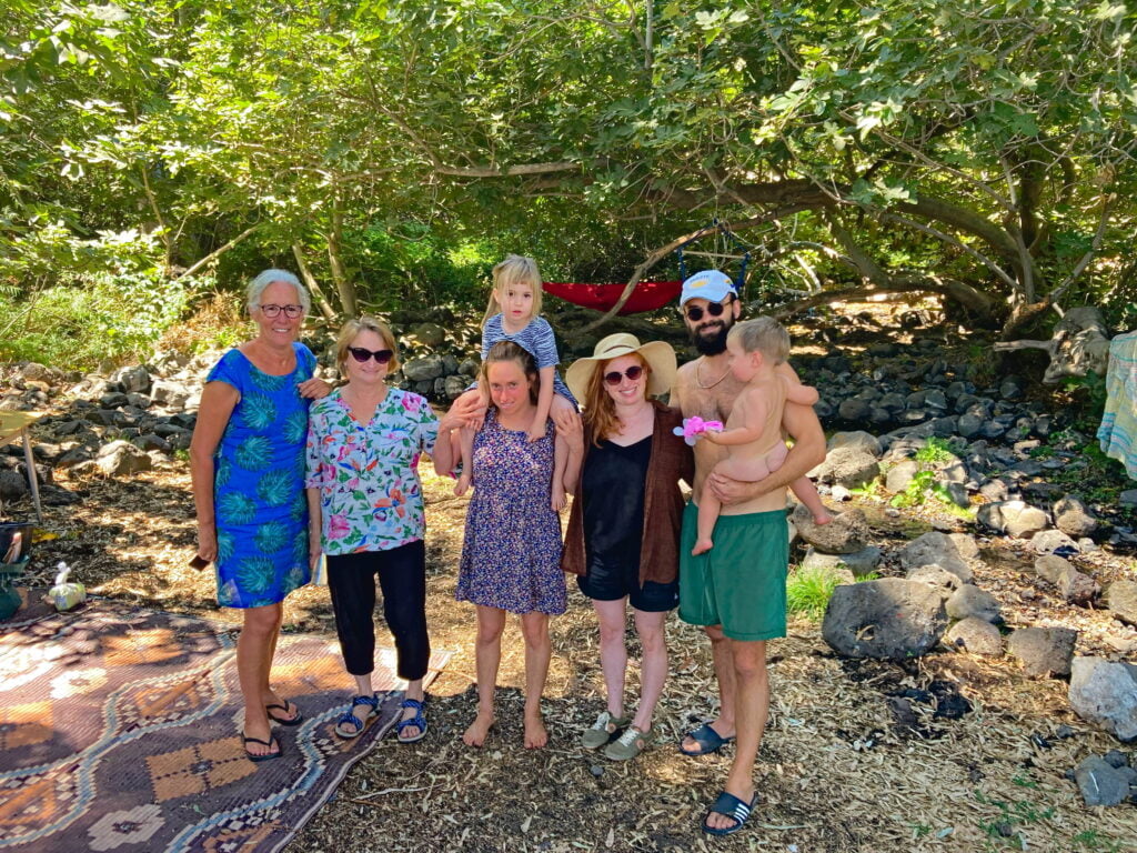 After dinner we sit by a fire together with mother Yaira, daughter Noga, son-in-law Arik and their children Nina and Refael and daughter Shay and son-in-law Nadav. Arik and Nadav play guitar and we listen to Israeli songs. What a beautiful evening, another one with a golden edge! The next day we rest, have interesting conversations, learn a lot about Israel and in the evening we cook and eat together with the family.
