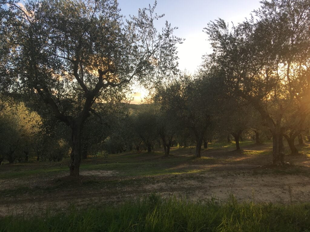 We camp near Siena at Agriturismo Il Sambuco , in the olive grove with a view over the area.