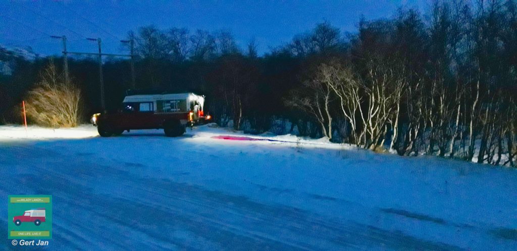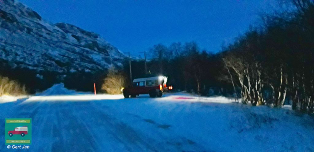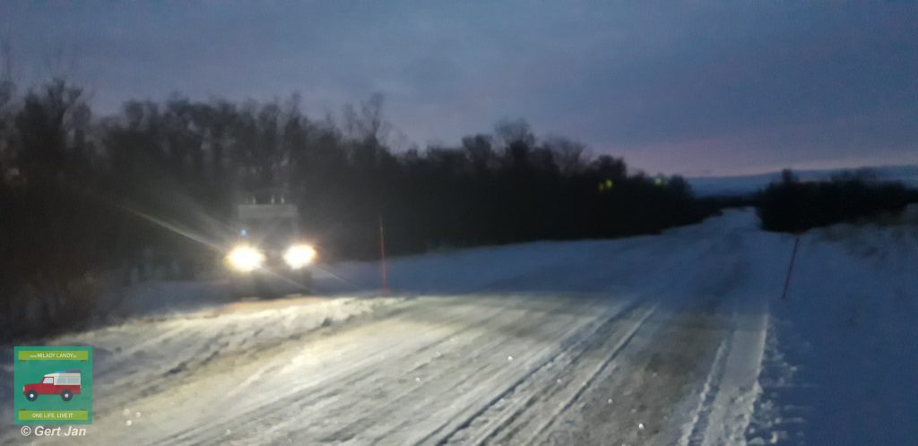 Northern Finland is a chain of forests, forests and more forests. The road we choose has been cleared of snow well, but still covered with a layer of knocked-on snow. Especially since it is already dark early, you need to be careful.