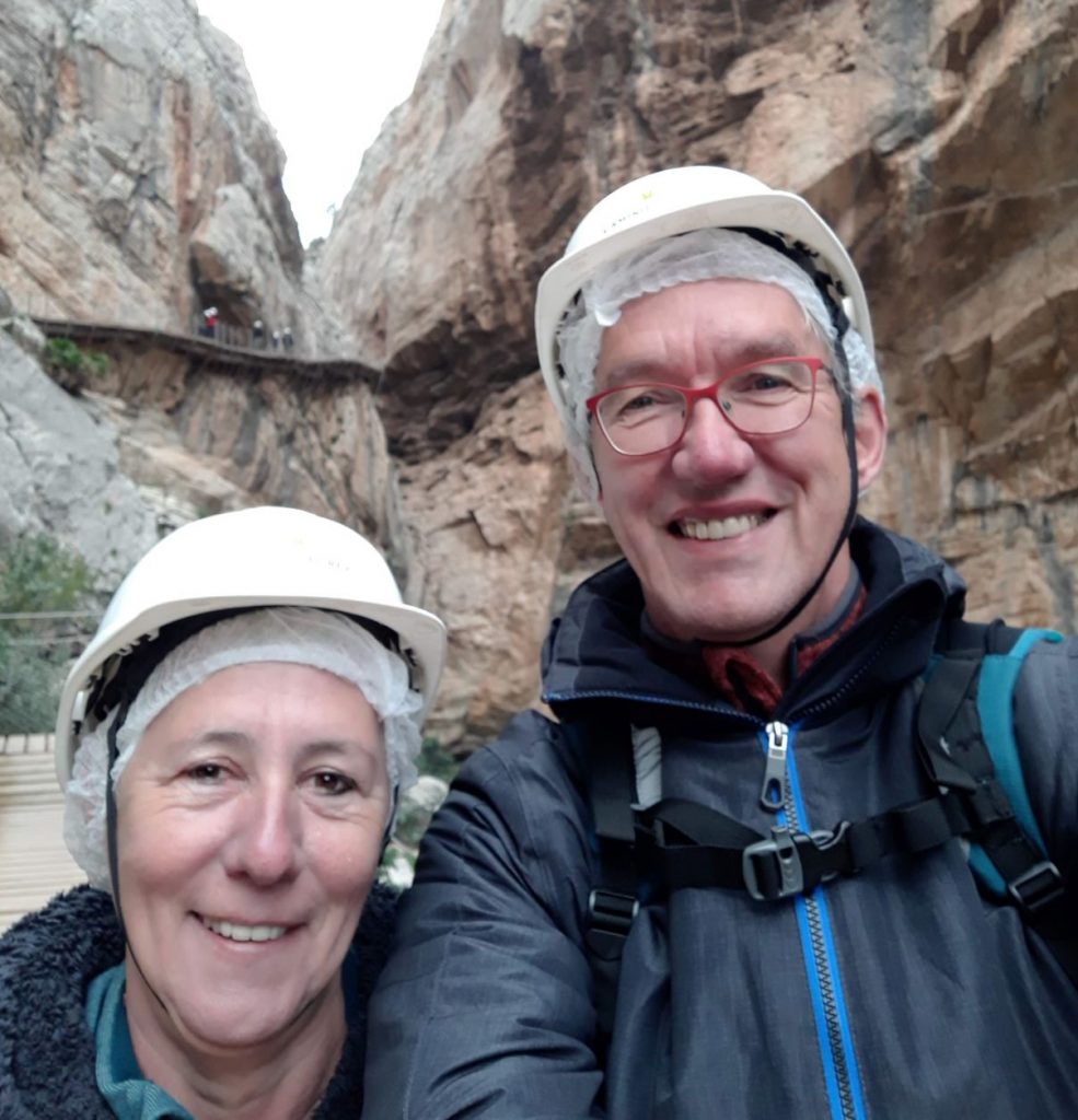 The Caminito del Rey is a historic path through the El Chorro gorge that has recently been completely refurbished and made suitable for hiking without mountaineering aids. We still get a helmet, but the walk is easy to do. It is beautiful, the walk itself between the sky-high rock walls, the animals we see, a gems and the vultures flying high above us and of course the hundreds of pigeons that nestle in the walls of the gorge. A nice walk with a lot of wind and sometimes a threatening sky, but we can complete the walk and enjoy it to the full.
