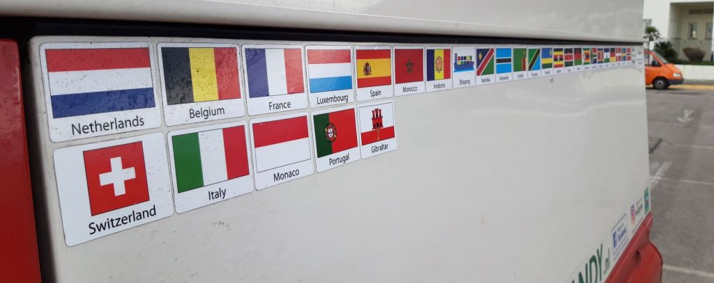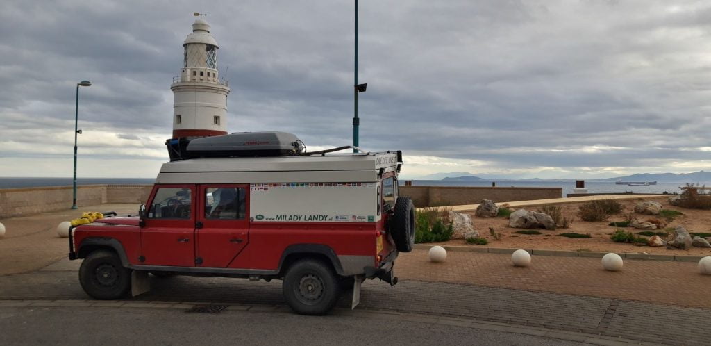 We drive into Gibraltar to put another sticker on our car, the 28th sticker of the series that I am using Overlandstickers.com.