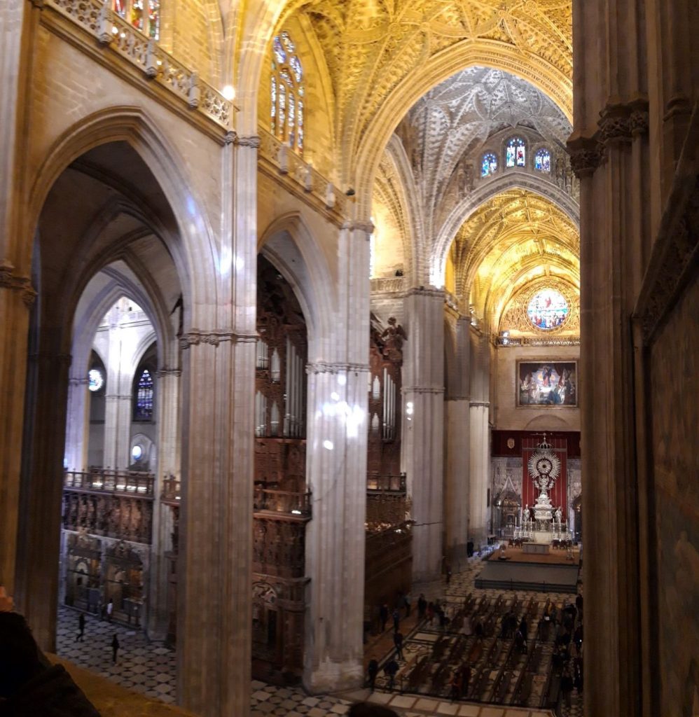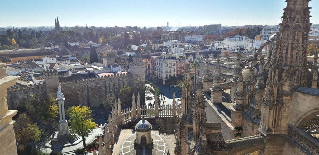 Later we wander through the cathedral and admire the many lavish works of art. We climb the Giralda, the bell tower that was used as a minaret by the muezzin in Moorish times for the call to prayer. The climb up therefore does not go via stairs, but via a slope where this muezzin climbed up and down with his horse five times a day.
