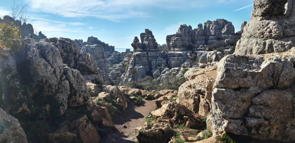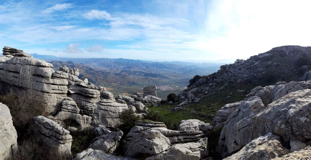Yesterday we drove to the top of the El Torcal, between the seemingly stacked rocks there was a thick fog and everything was wet and slippery. Today the sun appears, so we climb to the Paraje Natural Torcal de Antequera again with our Milady Landy. The mountains tower high above the plains and still have clouds on top, we are curious if we can walk.