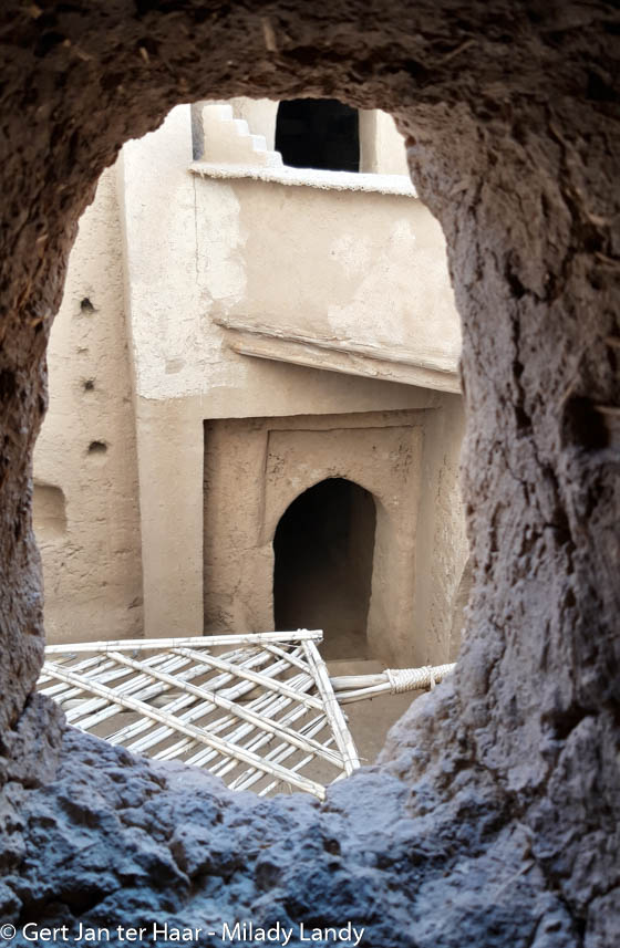 Then we continue, we drive via Tamegroute. There is a library with ancient Arabic and other writings, very worthwhile, according to the Lonely Planet. We are shown around the library room by the old librarian who has been working here since 1959, who is an experience himself. The man is glued to a wheelchair and speaks only a few words of French, interesting to say. Then guide Mohammed takes us to the courtyard of the neighboring mosque and the kasbah in which Jews and Muslims have been living together for centuries and cooperatively bake pots and paint them with natural materials.