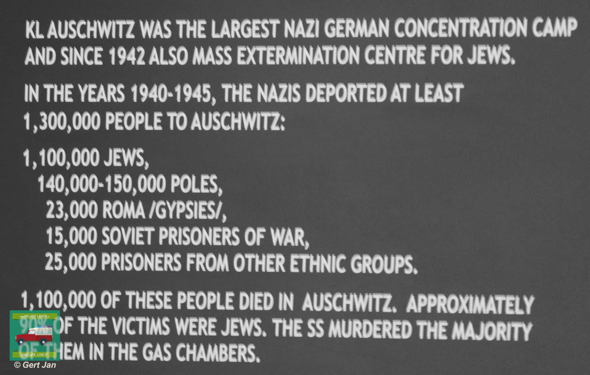 This is where the history of the German concentration camps in World War II began. At the start of the war, mainly Russian prisoners of war and Polish (rebellious) civilians were imprisoned here. Later this became an extermination camp for Jews, Gypsies, Poles and other ethnic groups from all over Europe. Of the 1.3 million people deported to Auschwitz, a total of 1.1 million people died in Auschwitz.