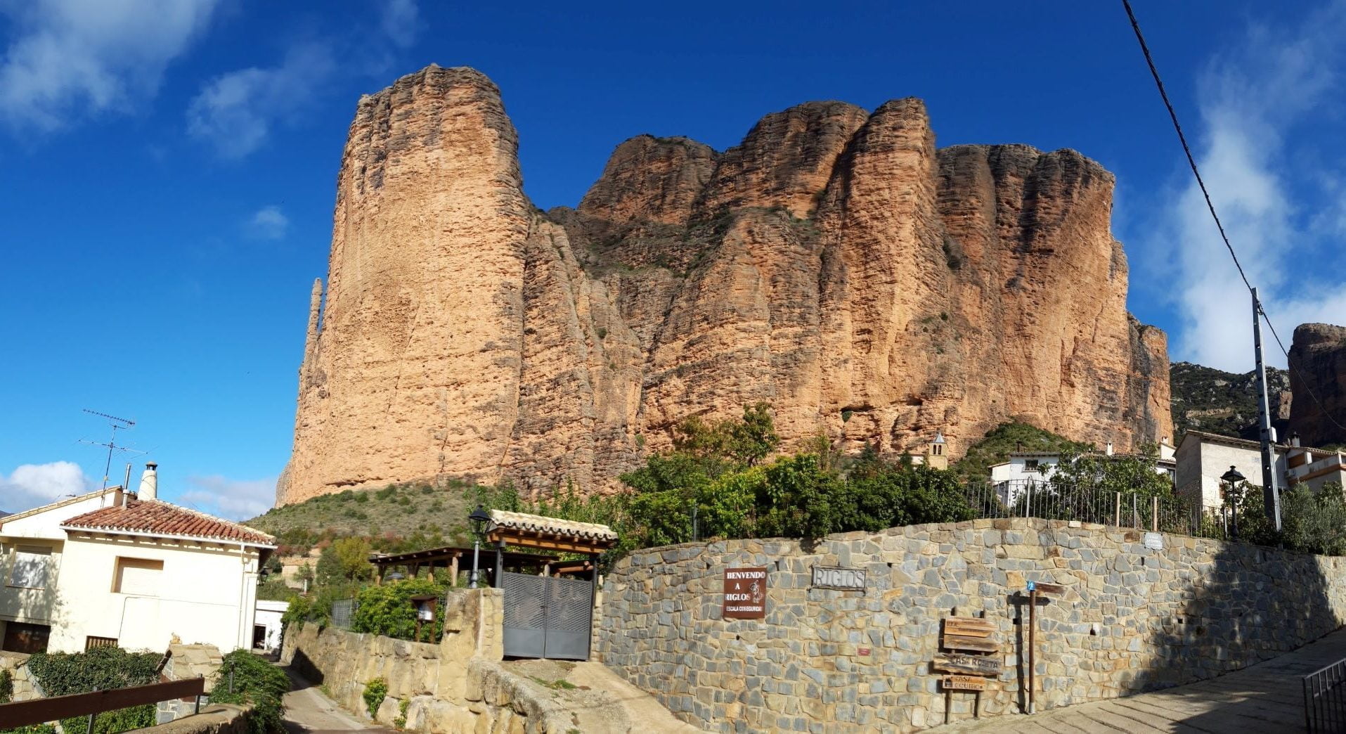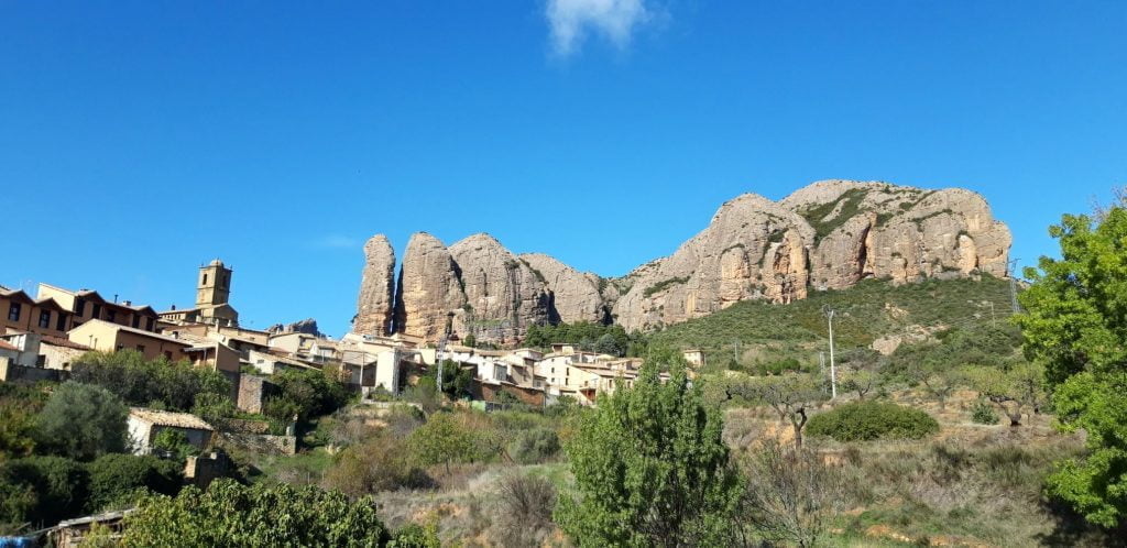 Our second night in Spain is in Zaragoza, en route we stop at the Mallos de Riglos and Agüero, very special rock formations that rise like pillars next to the villages of Riglos and Aguëro. Nice to walk around when the weather permits. For us, the time was too short and the temperature and wind were not attractive enough to take a walk …