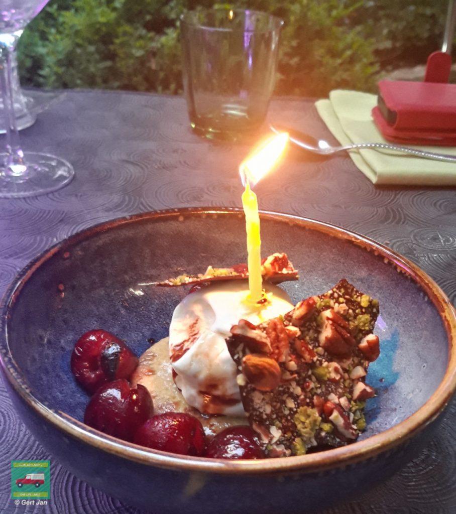 When making a reservation at restaurant Loxalis, Sonja mentioned that it was my 65th birthday. That is why we are surprised on arrival with a glass of champagne on the house.
