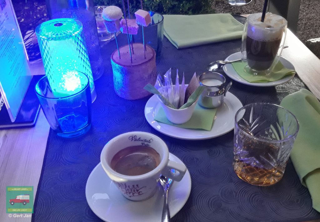 At the end of the dinner I have a glass of Japanese Nikka Whisky and Sonja an Irish coffee. We are enjoying it a lot.