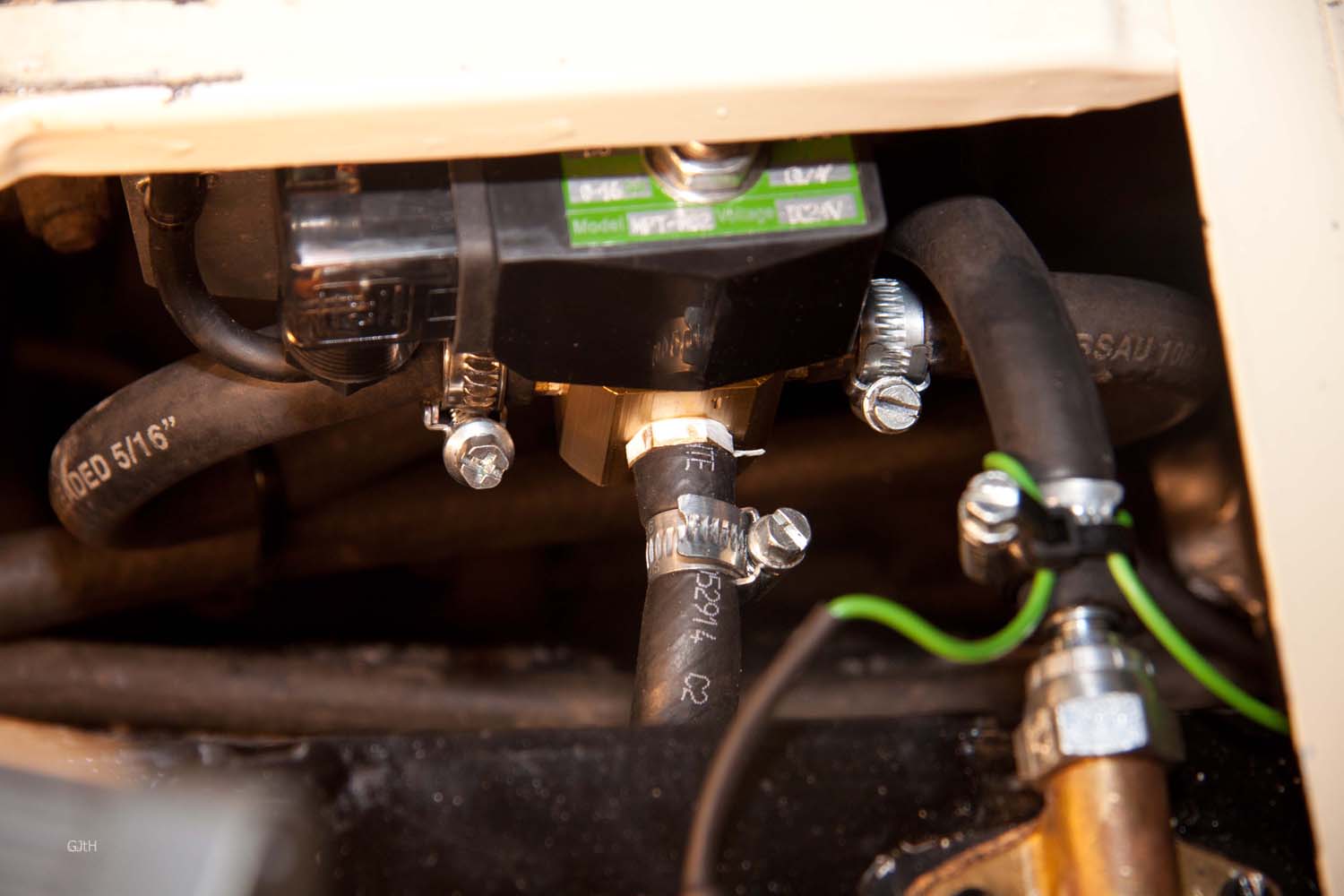 In the middle the float for fuel level, also the suction and the top of the picture, the electric three-way valve.