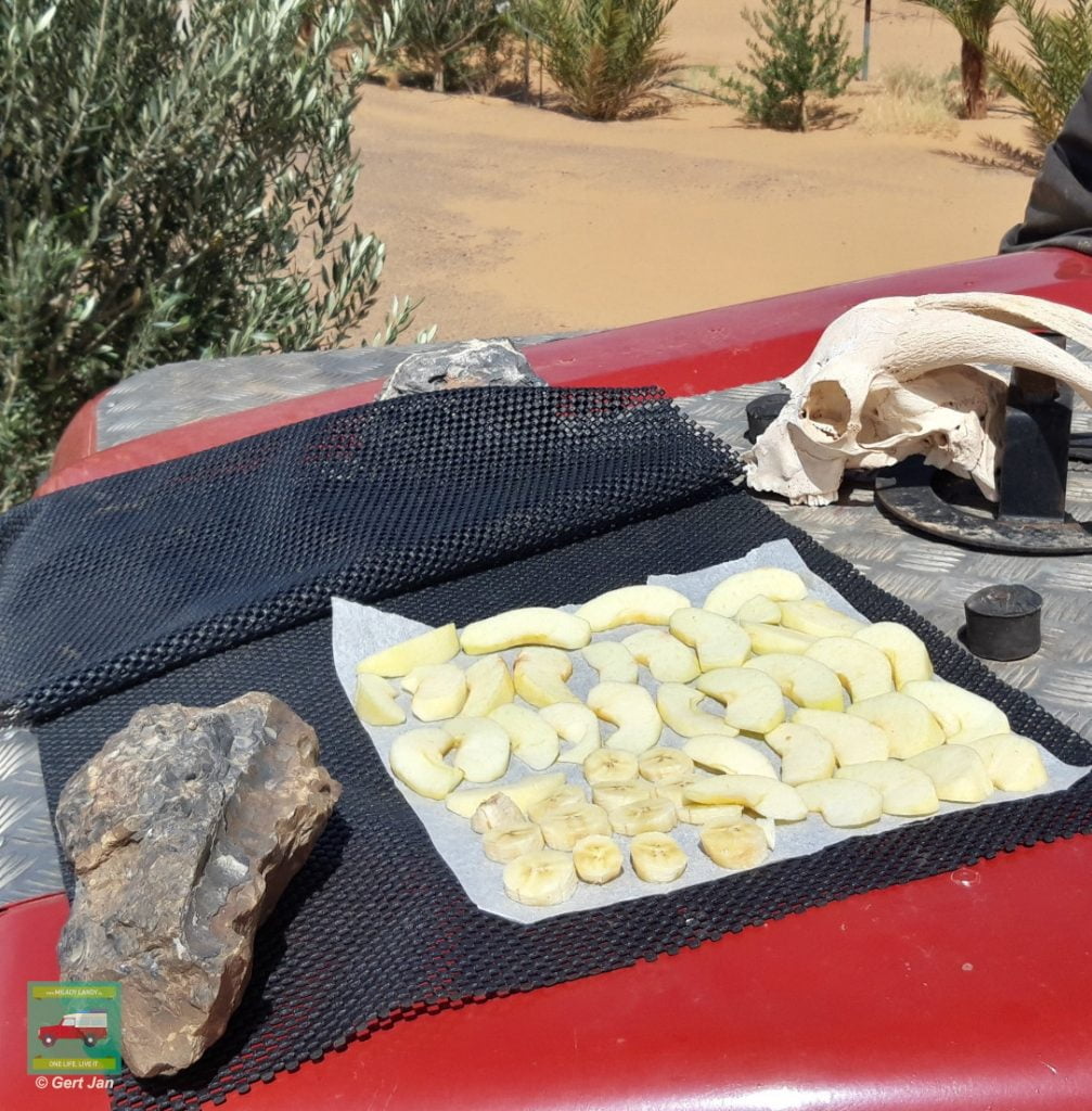 In het droge woestijnklimaat van Merzouga ben ik maar eens een nieuwe uitdaging aangegaan, vruchten drogen.